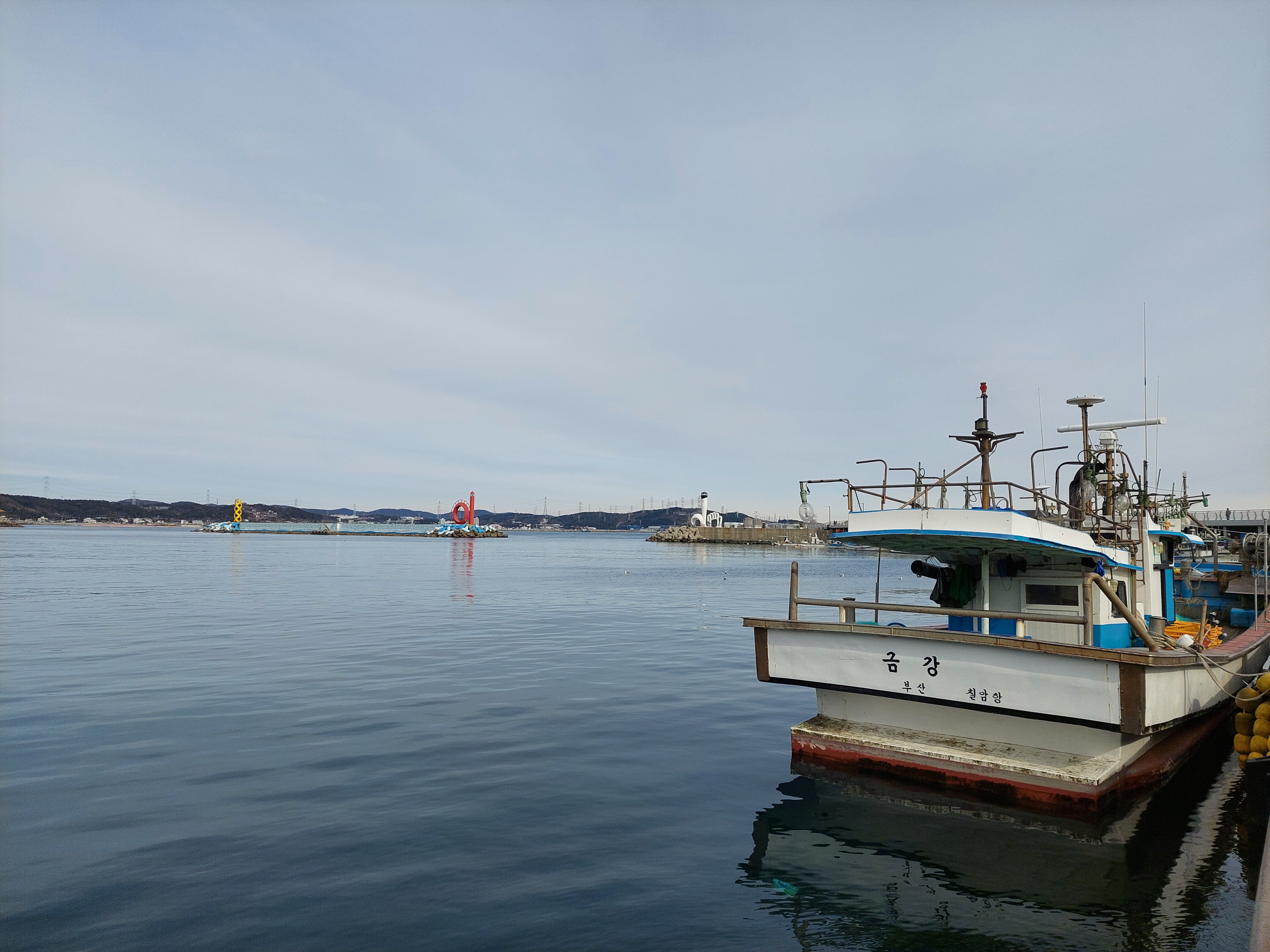 칠암 항구에서 바라본 옛 추억의 조형물